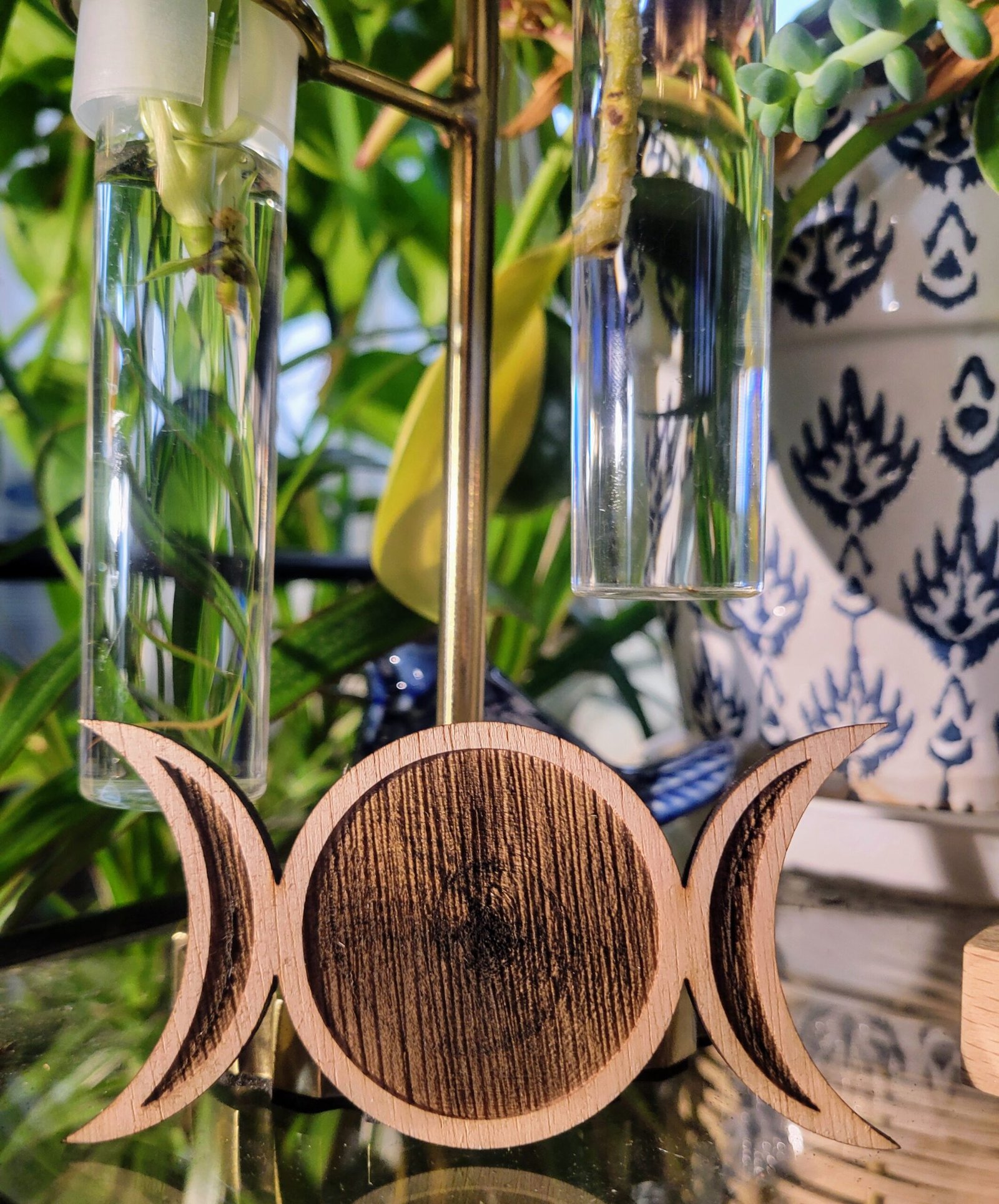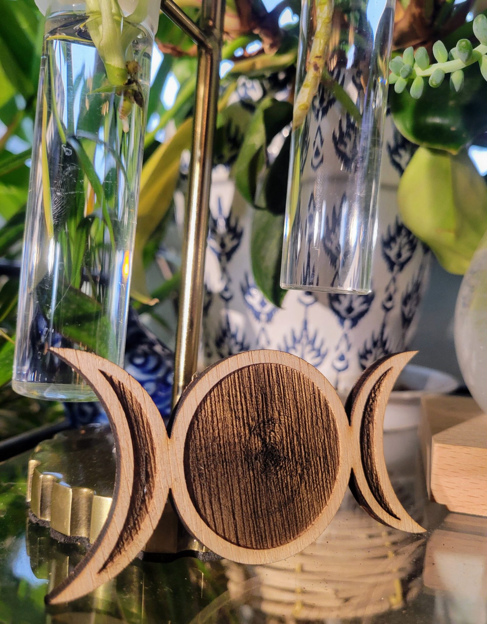 This piece features burnwork in the moons. A full-cut piece is also available in the store.